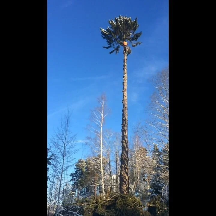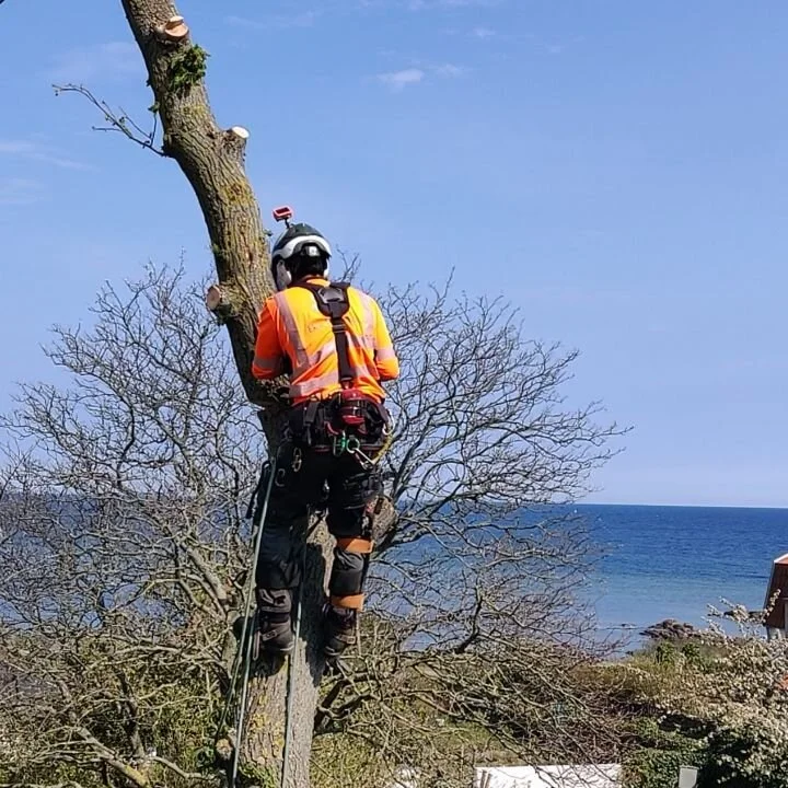 Vad gör en arborist? Här en sektionsfällning av en alm i Österlen.